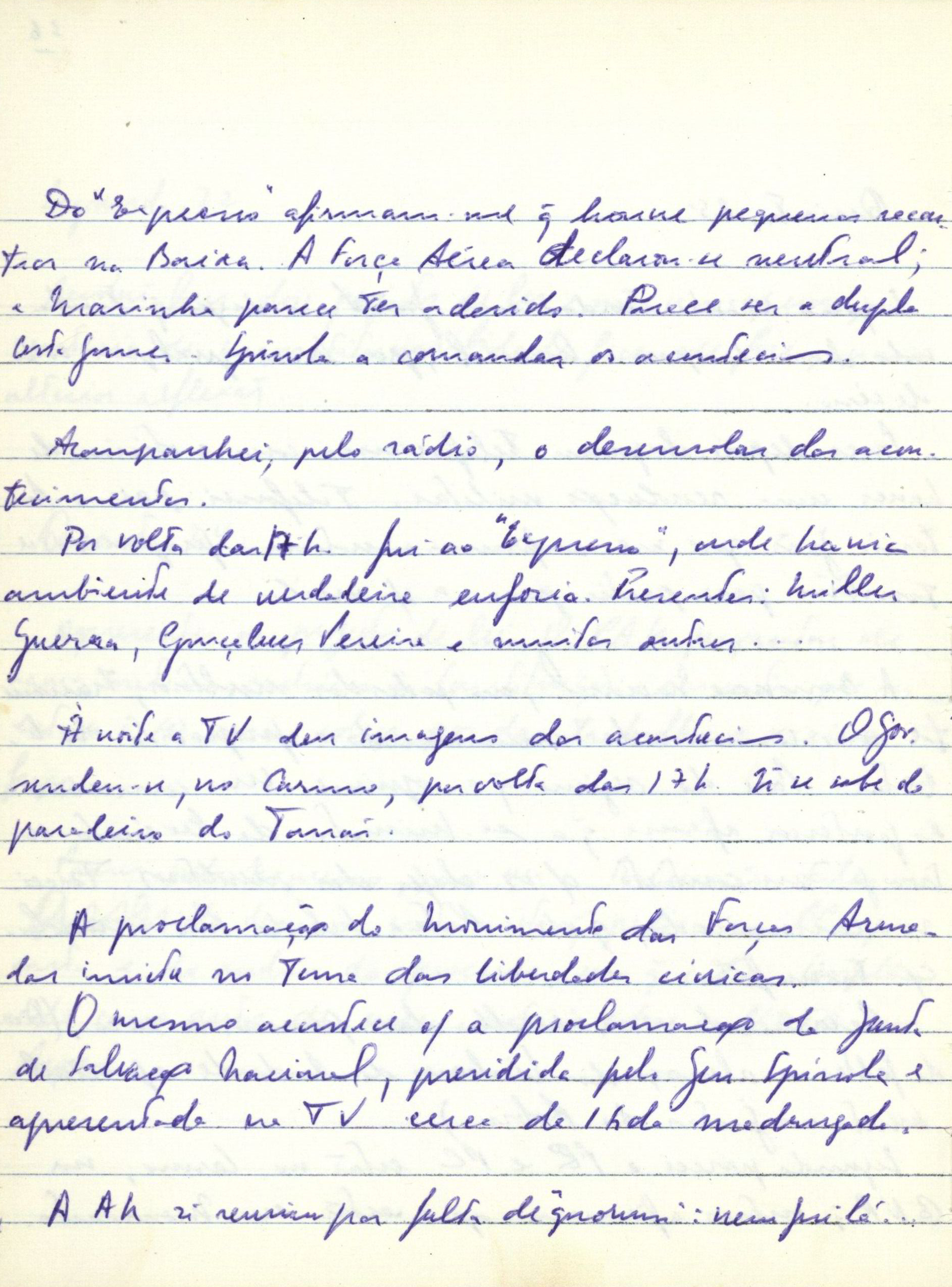 Extraída do caderno diário identificado como “Diário – vol. VI – 15-11-1973 a 15-6-1974″.